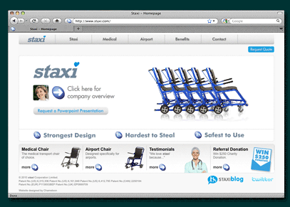 Business to business website for Canadian based staxi, manufacturers of the World’s Leading Nestable Transport Chair, for large facilities such as hospitals and airports.
